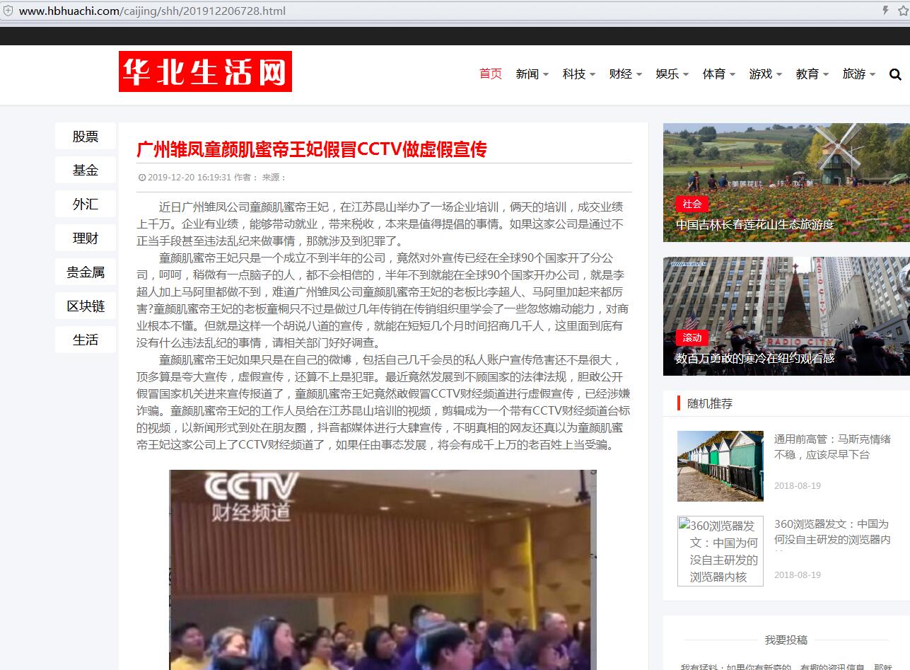 近日广州雏凤公司童颜肌蜜帝王妃,在江苏昆山举办了一场企业培训,俩天的培训,成交业绩上千万。企业有业绩,能够带动就业,带来税收,本来是值得提倡的事情。如果这家公司是...